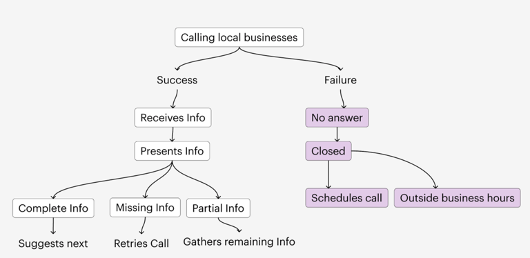 Automated phone calls can fail in many unpredictable ways. Instead of canceling the request or leaving users without an outcome, we designed an escalation path as part of the system. After multiple failed attempts, the task would be handed off to a human in the loop, ensuring the work can still be completed and the user isn’t left stuck in an automation loop.