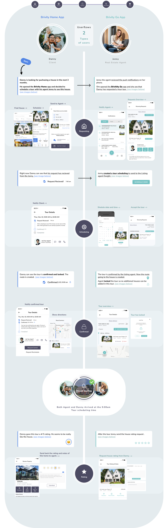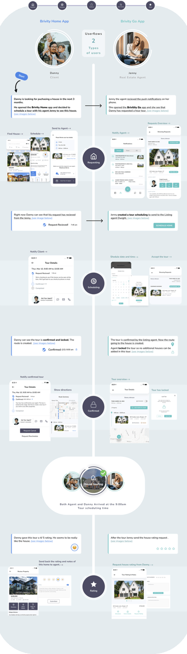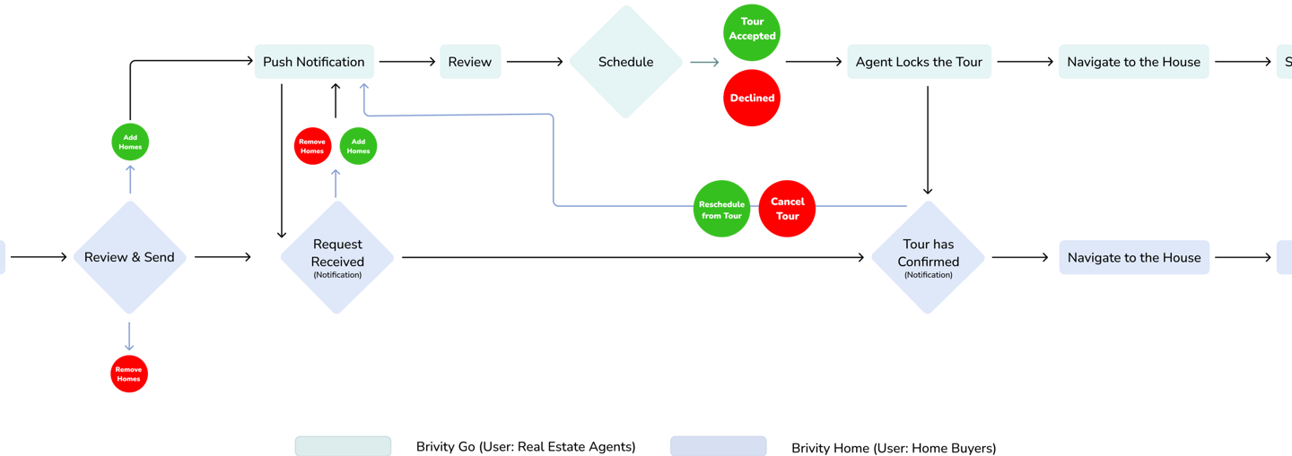 The Brivity home app doesn't have a feature for buyers to see steps by steps updates after they submitted the house tour request to their agents. The only way to know is to text the agent, there's no in app messenger to facilitate it.