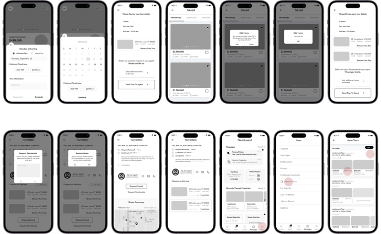 From scheduling, selecting additional homes, sending request to agent, navigate to the homes and rate review the home.