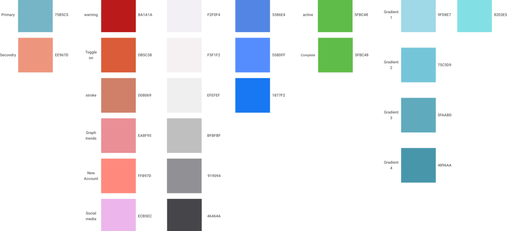I selected the #75B5C5 and #EE967D from the brand color as primary and secondary color. The rest of the colors are used through out the project.