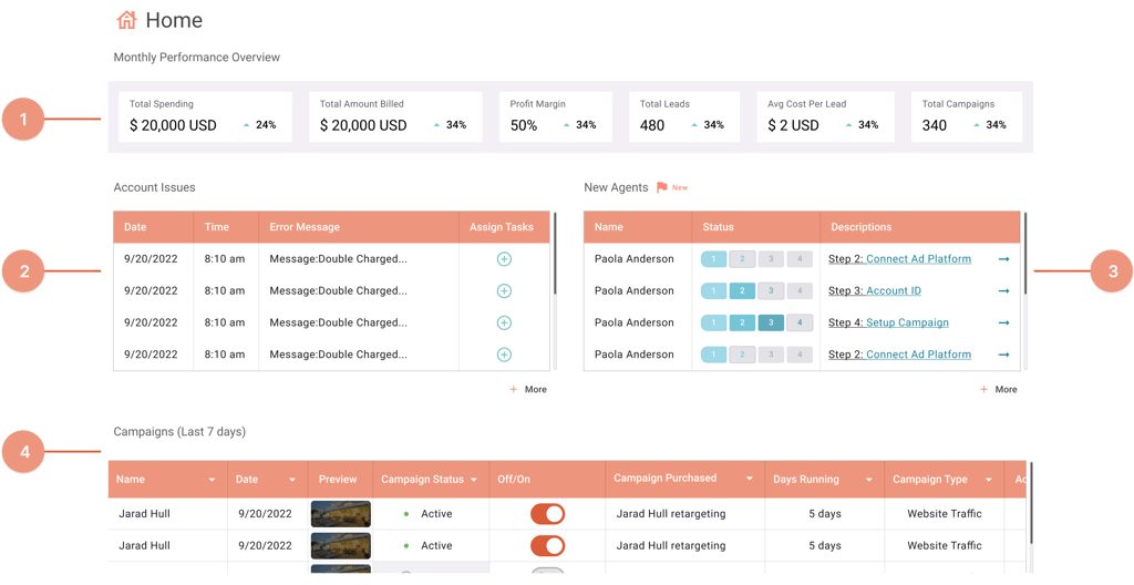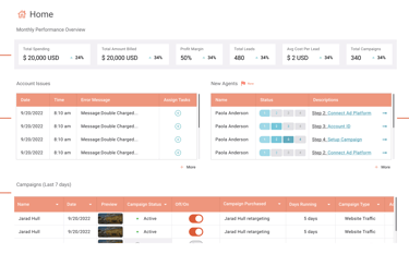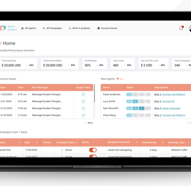 Current campaign that shows on the dashboard will be only displaying the last 7 days added campaigns.When creating campaigns, there needs to be a drop down to choose the ad account.