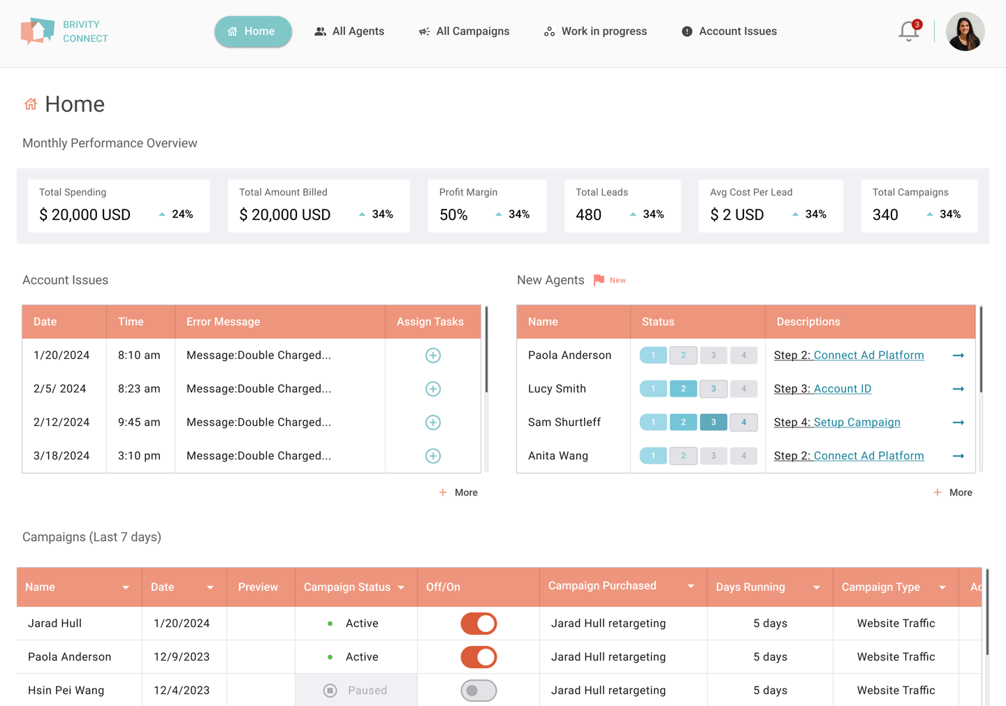 Amy's suggestion: To add the name of the agent on the create campaign page so we can know we are adding this campaign to the correct client account.