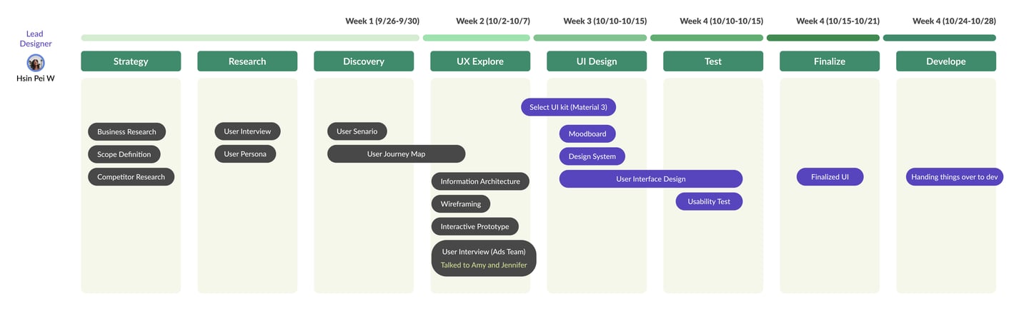 As a lead and the solo designer of the project, my responsibilities were creating an integrated system that the ads team can navigate easily and efficiently from point a to point b.
