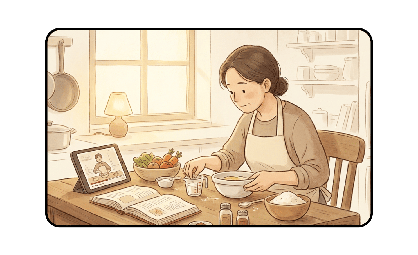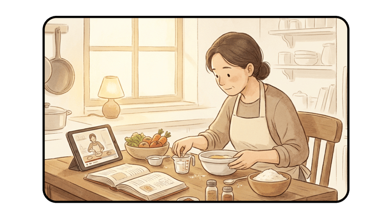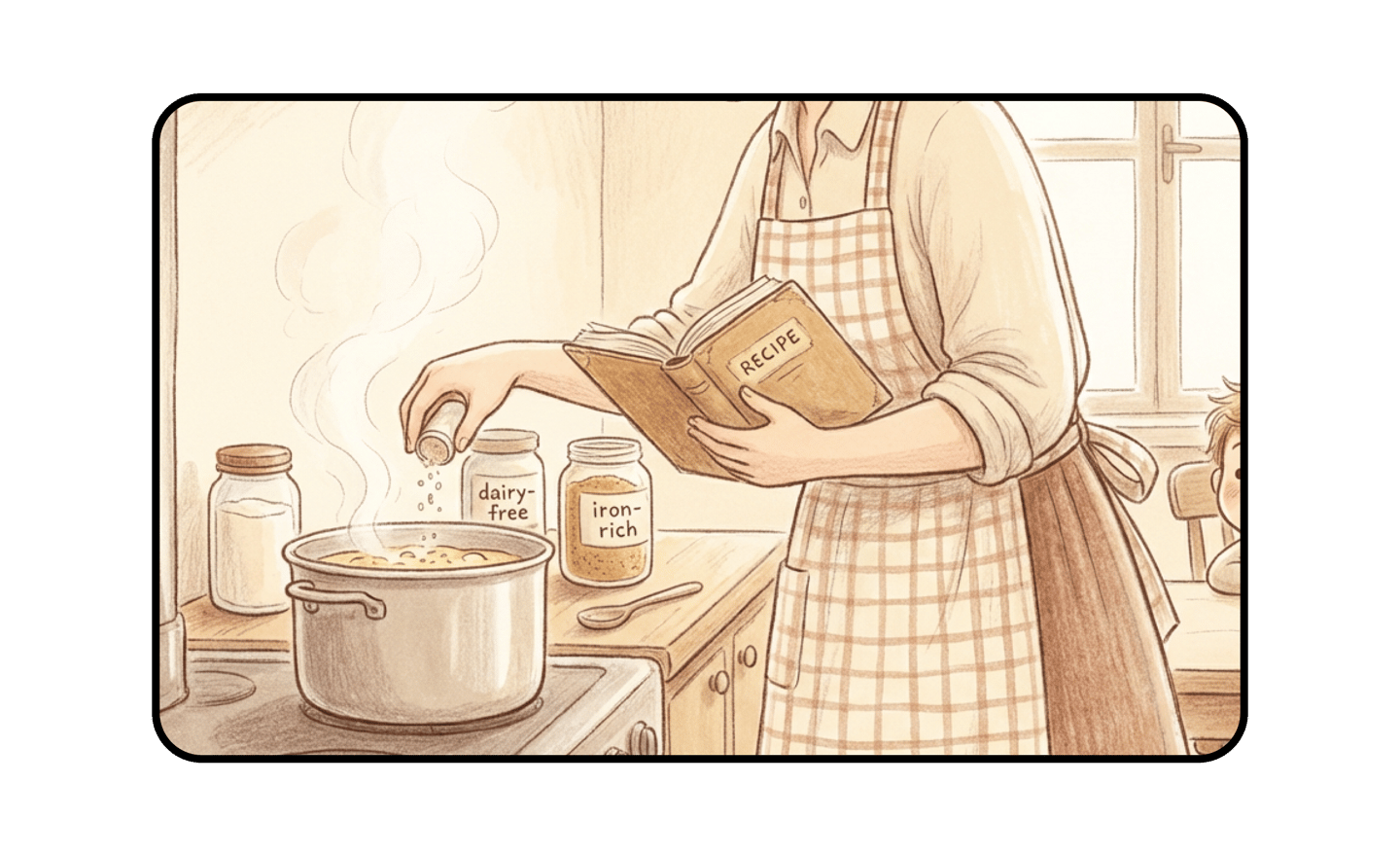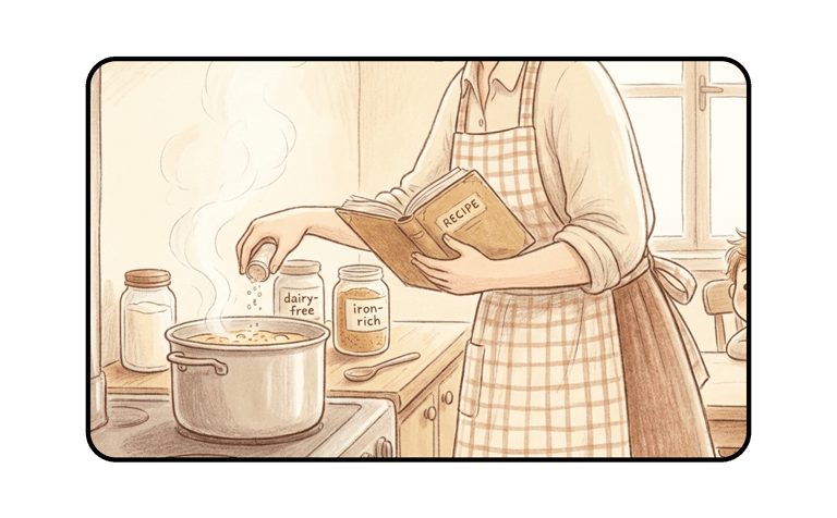 These illustrations come from real interviews with families and home cooks. They reflect common challenges faced across a variety of households.