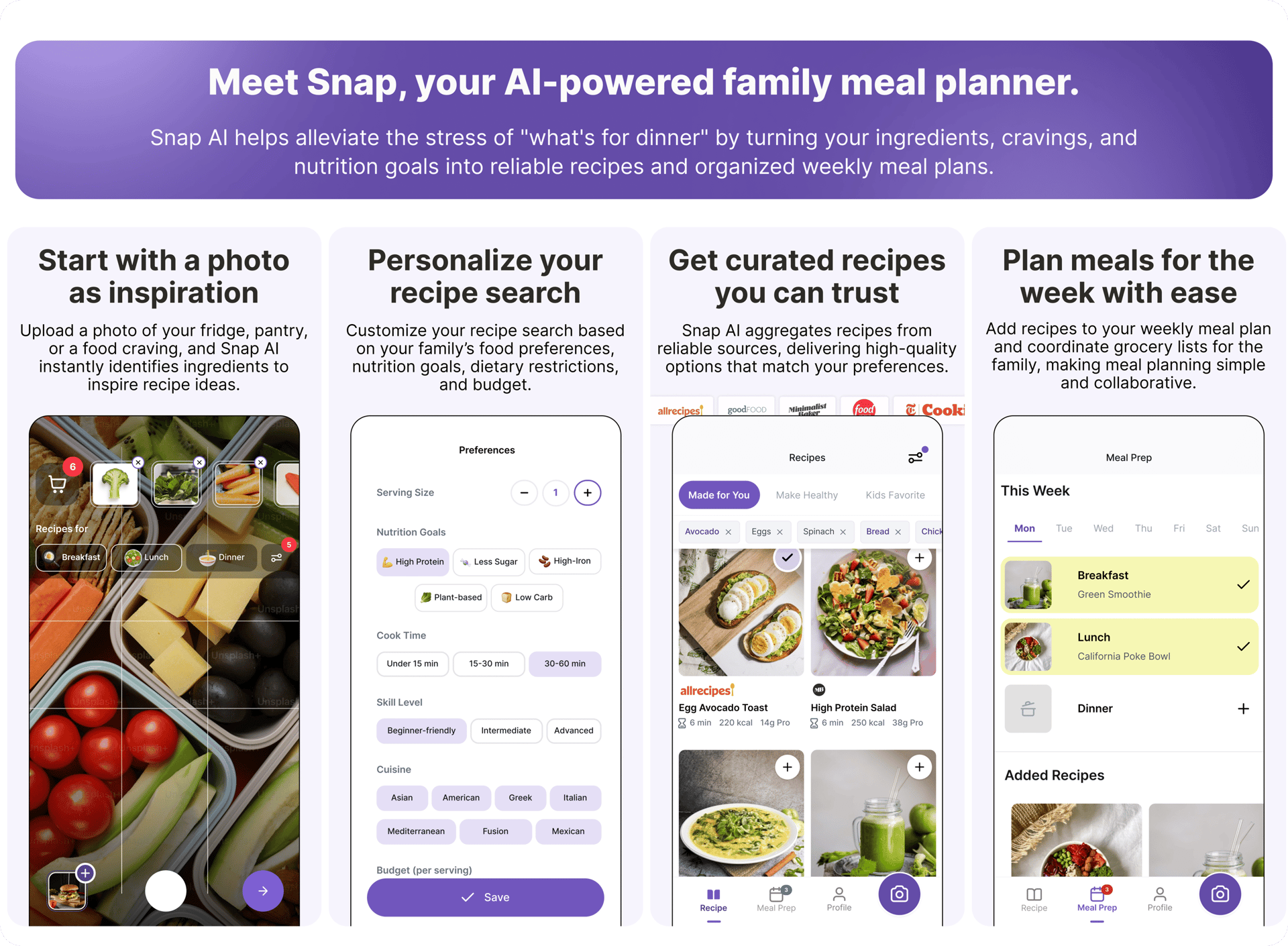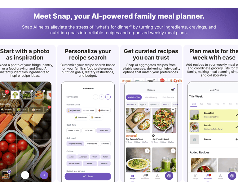 Meal planning is a high-frequency task, but the real need is creating meals that satisfy everyone in the household, giving families confidence that mealtime is enjoyable, manageable, and stress-free.