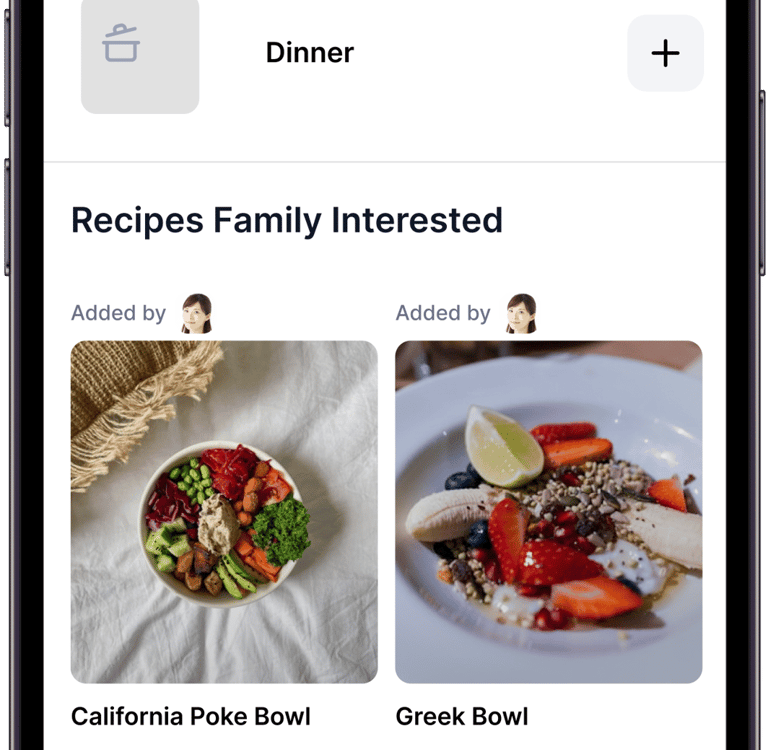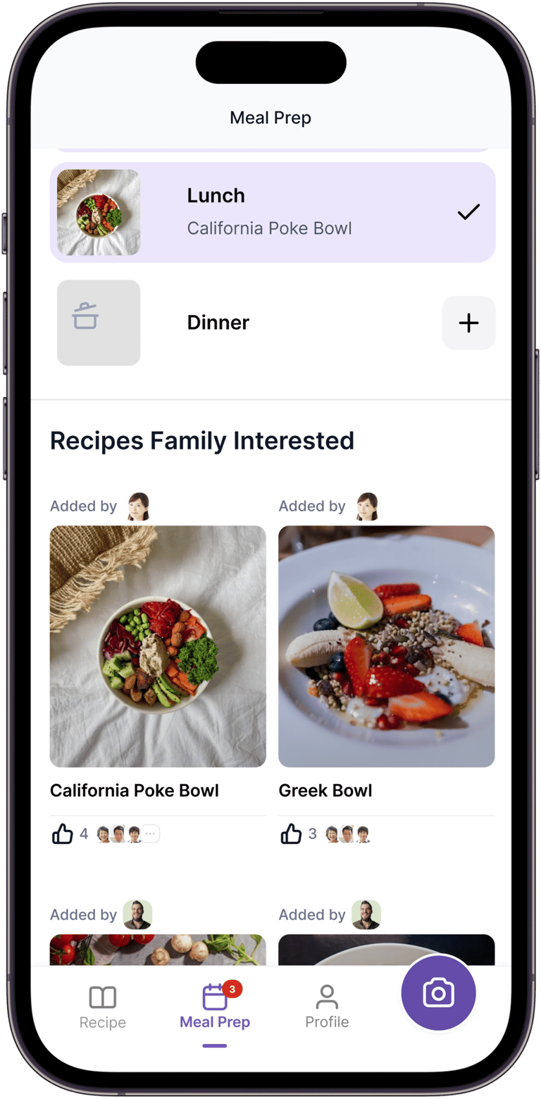 Families using our task management and calendar apps frequently asked for help with meals and recipes. They often took photos of food at home and added follow-up notes in their calendars to plan meals. This behavior suggested an unmet need around meal organization and planning.