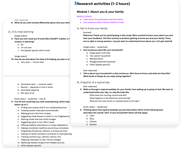 Led initial user interviews to understand core family meal-planning pain points