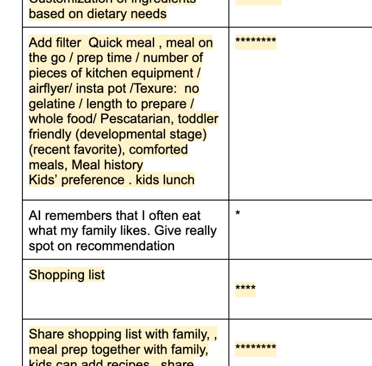 However, as we expanded our research—conducting in-depth interviews with 28 families using dscout—we discovered that the core challenge wasn’t just planning meals. Families were less concerned with scheduling and more concerned with finding meals that everyone actually enjoys. Different tastes, dietary needs, and preferences made mealtime stressful and challenging. Families wanted customization and flexibility, not just a structured plan.