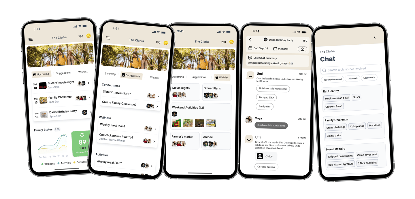 We decided to combine the most valuable features from Family Chat , Family Sync (calender), and Family Meal planning into one unified product vision. This led to Umi — a family-focused app designed to help families coordinate better, stay connected, and support healthier lifestyles.