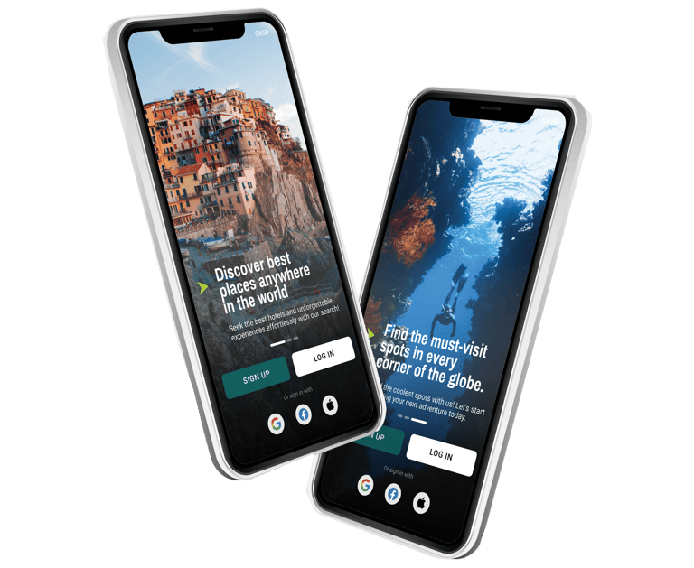 Showcasing captivating imagery to spark excitement for future travels. Users also have the option to sign up while browsing through the onboarding pages.
